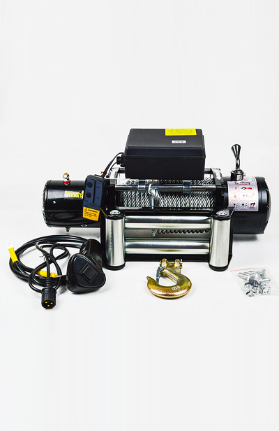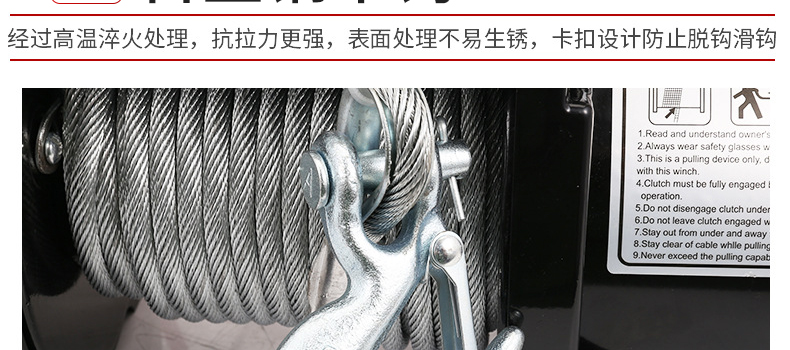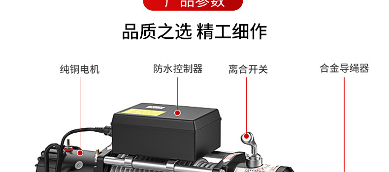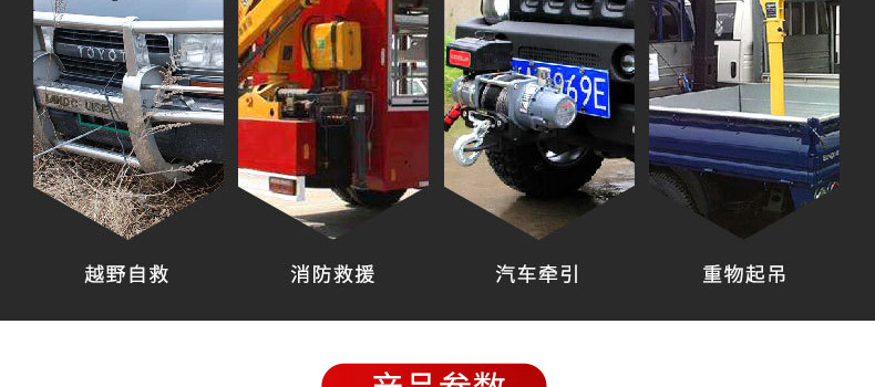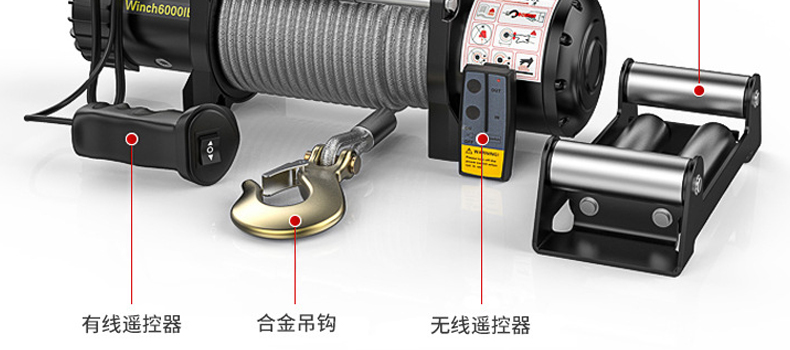 9500磅电动绞盘适用于路障救援车辆,汽车绞盘应用四级行星齿轮,大马力电机,扭力大,拉力持久稳定,静音刹车,性能高。