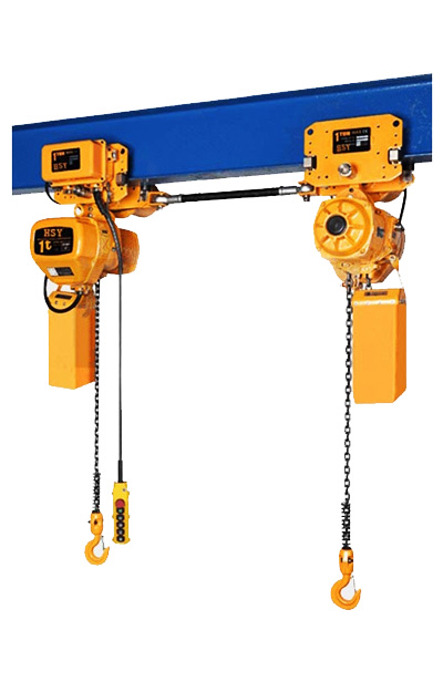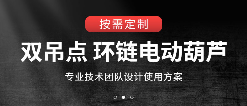 ● 双吊点葫芦可根据使用环境按需定制 ● 吊运稳定,常用于高要求水平起吊搬运作业 ● 适用于高扬程、大起重量、高起升速度、大间距等特殊要求使用场合。