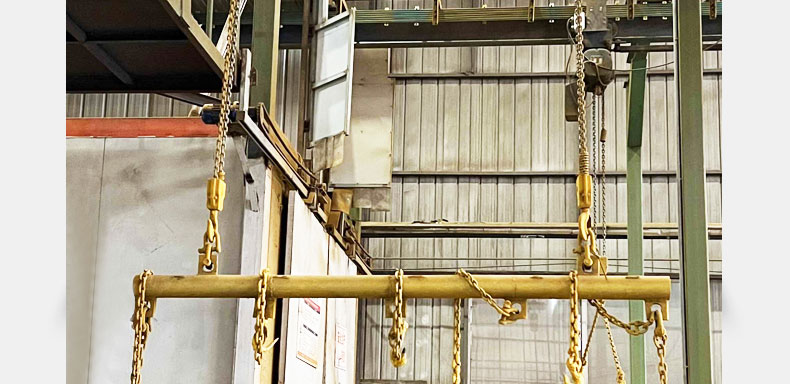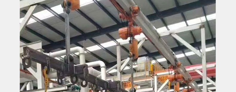 2、双钩之间的距离也可根据负载长度进行调节,适合长形和重型负载的吊运,用于汽车装配等行业。