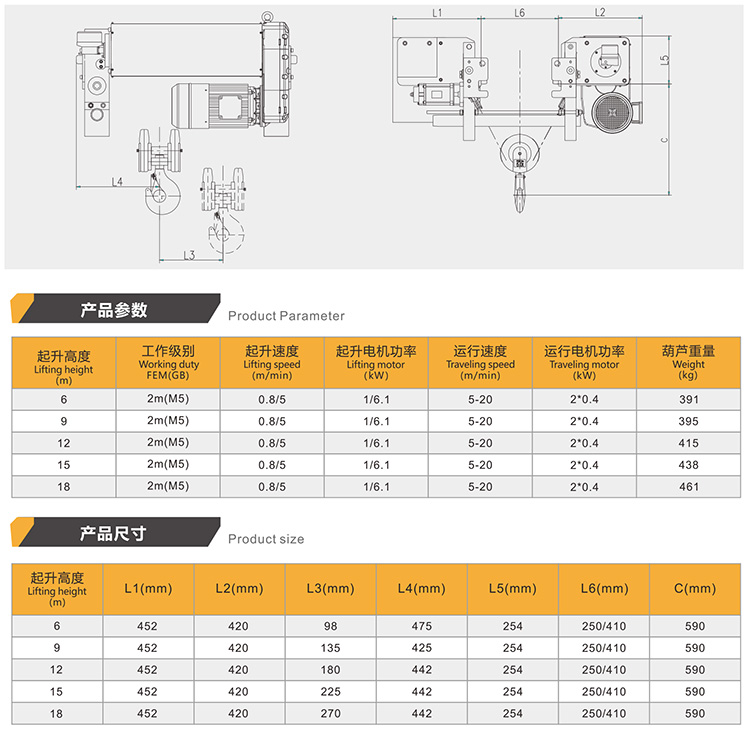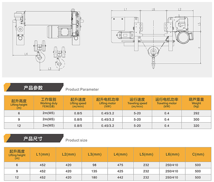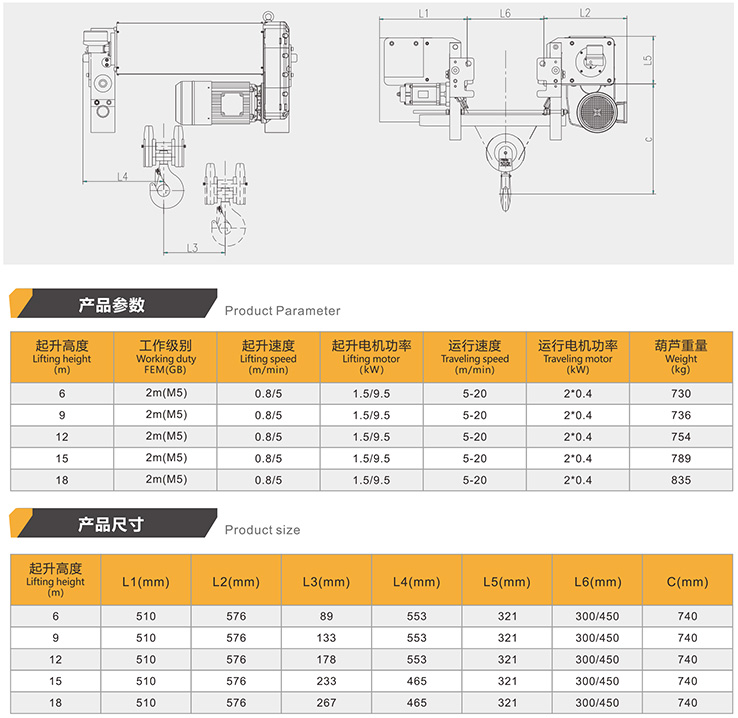 额定载重:3.2T-10T C型设计结构很紧凑,空间受限场所专用款欧式电动葫芦。 智能操控系统,模块化设计,运行效率高效。 运行定位精准,低噪音。 可按需定制各种规格,我们会为您提供参考解决方案。