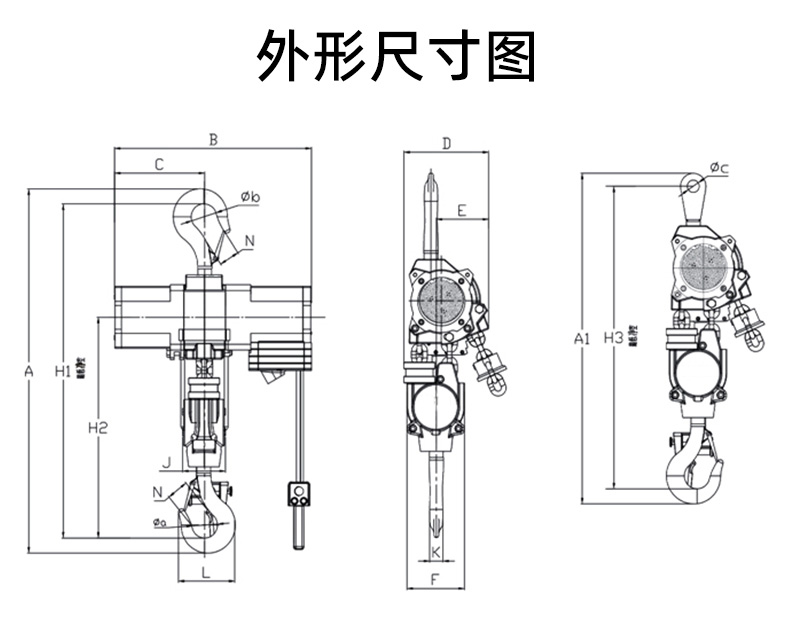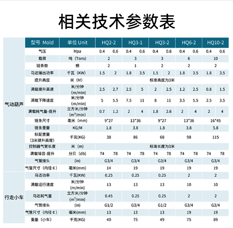 ● 断气保护,气源突然中断时,重载不会突然掉落而是悬挂停住,重载保护。