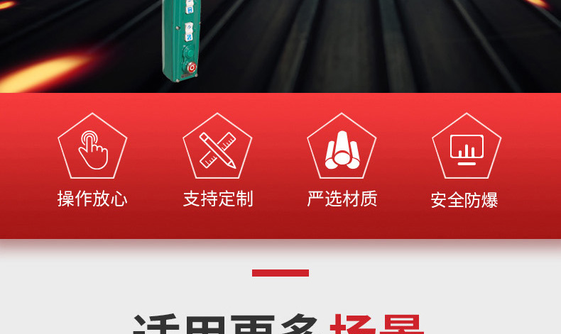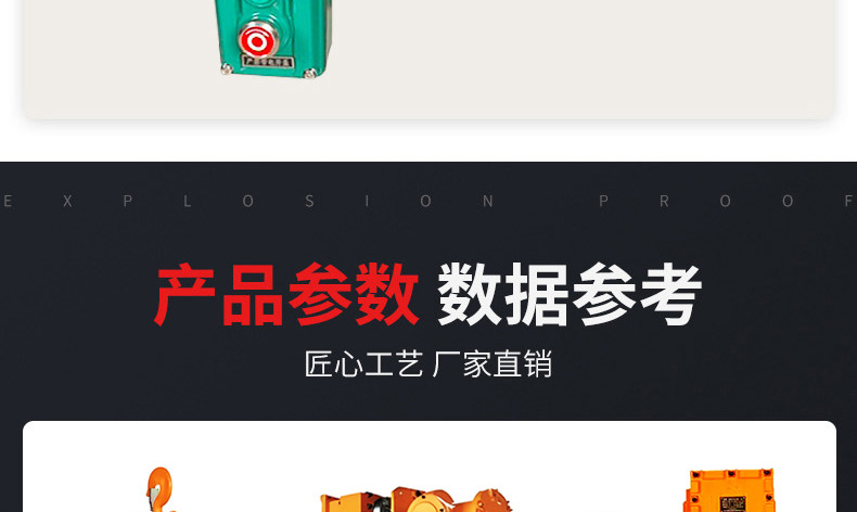 ● 防爆等级:ExtDA21 IP65 T135℃,适用环境:尘密型21区作业场所。