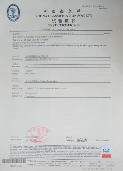 → 公司可为客户办理CCS船检证书