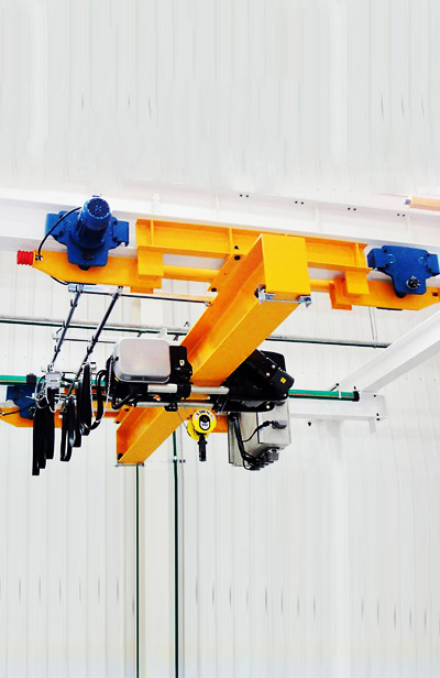 悬挂式单梁起重机是直接安装在厂房房顶结构梁上,无需安装纵向承载梁和起重机运行轨道。在降低成本的同时,可以完全覆盖厂房,尤其是通过使用侧端悬臂,可以使运行小车超出起重机跨距,使得客户在低成本投资的基础上又有效的利用了厂房面积。