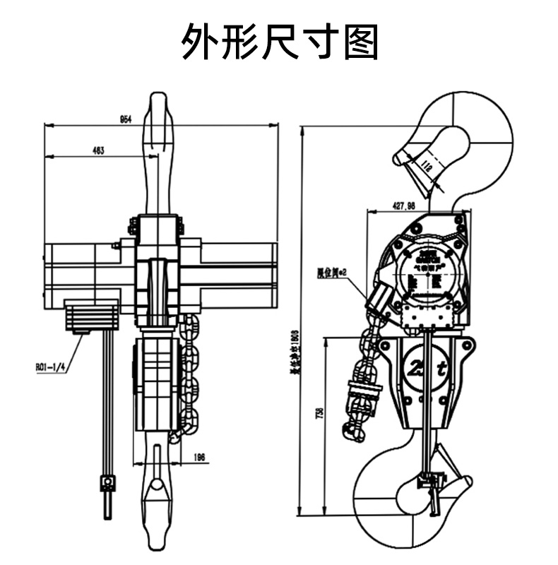 ● 断气保护,气源突然中断时,重载不会突然掉落而是悬挂停住,重载保护。