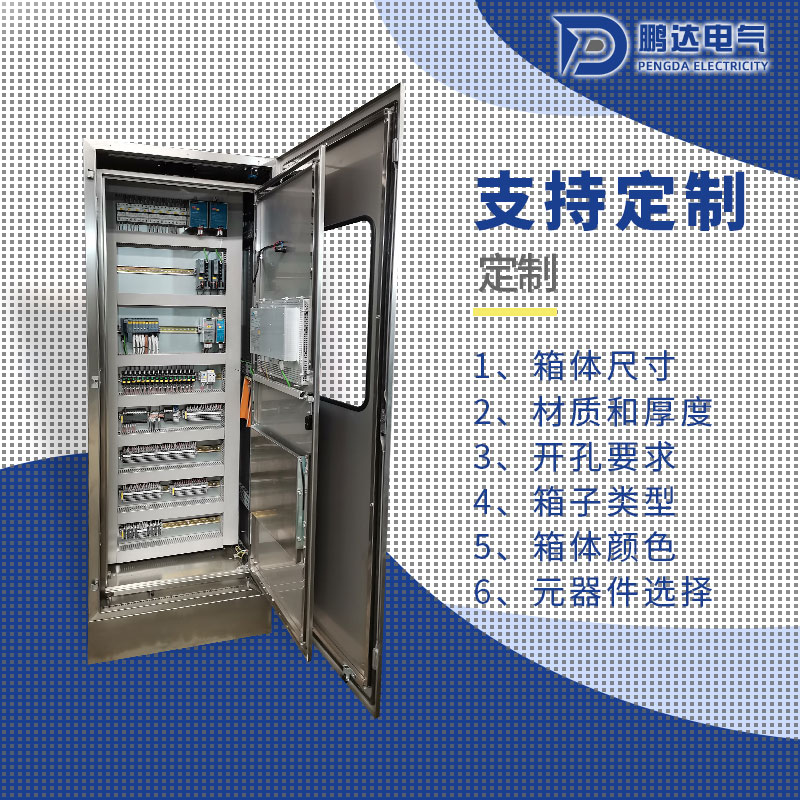 PLC 控制柜有过载、短路、缺相保护等功能。其结构紧凑、工作稳定、功能齐全,可以根据实际控制规摸大小进行组合,既可以实现单柜自动控制,也可以实现多柜通过工业以太网或工业现场总线网络组成集散(DSC)控制系统,能适应各种大小规模的工业自动化控制场合,被广泛应用在电力、冶金、化工、造纸、环保污水处理等行业中。